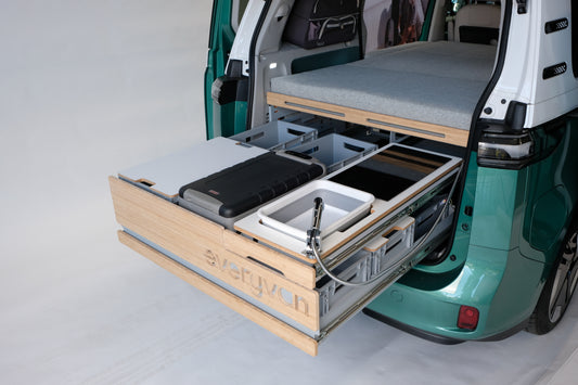 Bij Everyvan geloven we in vrijheid, avontuur en slimme oplossingen. Onze modulaire campermeubels passen in (bijna) elke bus en maken van jouw voertuig in een handomdraai een volwaardige camper. Ontworpen met oog voor detail, comfort en gebruiksgemak zodat jij zorgeloos op reis kunt, waar je ook heen gaat.