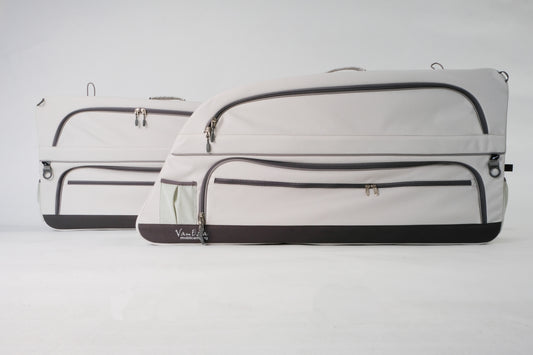 De raamtassen voor Mercedes combineren opbergen, isoleren en verduisteren in één stijlvolle en doordachte oplossing. Perfect passend in de achterste zijramen van de bus, bieden deze tassen extra opbergruimte zonder in te leveren op functionaliteit of comfort.